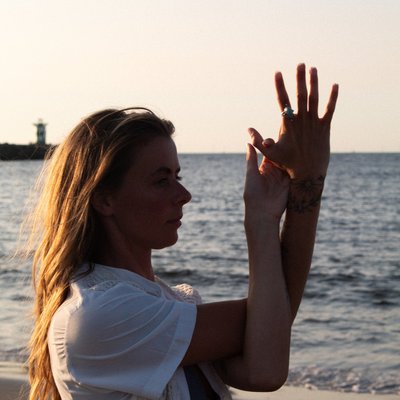 Op dit moment sta ik elke dag op met zonsopkomst, wandel naar een parkje en voel de ochtendzon op mijn huid terwijl ik stretch. Ik heb een aantal vaste oefeningen om mijn gewrichten soepel te houden, en daarna beweeg ik op wat mijn lichaam nodig heeft. Vaak ontstaan tijdens deze momenten de thema’s of bewegingen die ik later in mijn lessen gebruik.